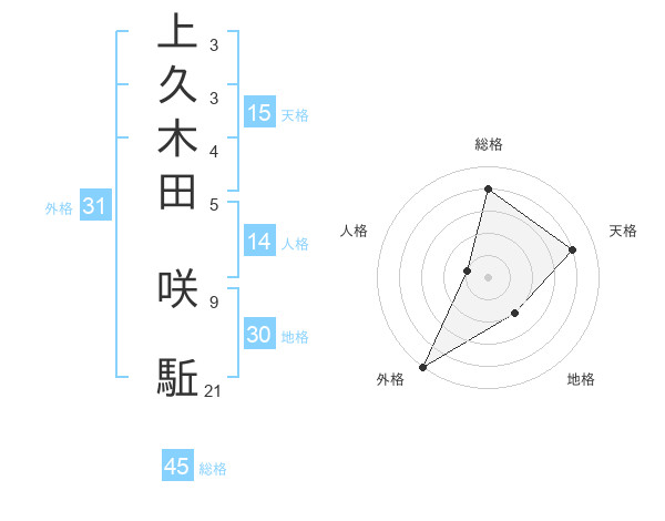 上久木田 咲駈さんの外格は31画の5点!