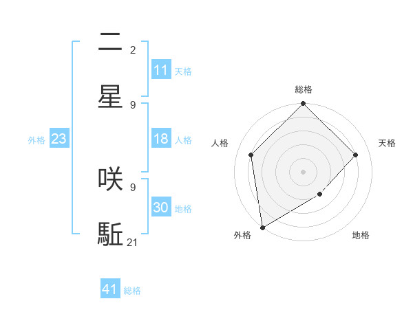 二星 咲駈さんの総格は41画の5点!