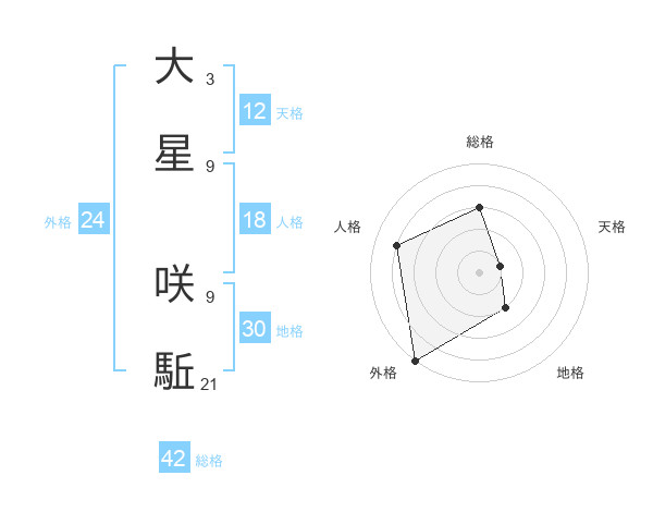 大星 咲駈さんを姓名の画数から五運を鑑定