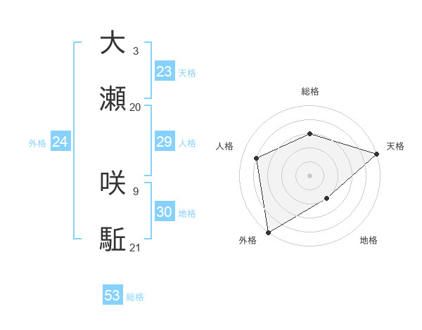 大瀬 咲駈さんを姓名の画数から五運を鑑定