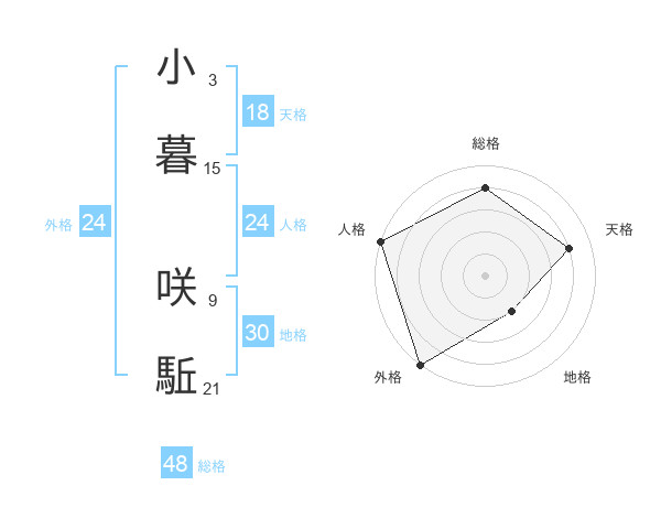 小暮 咲駈さんの外格は24画の5点!