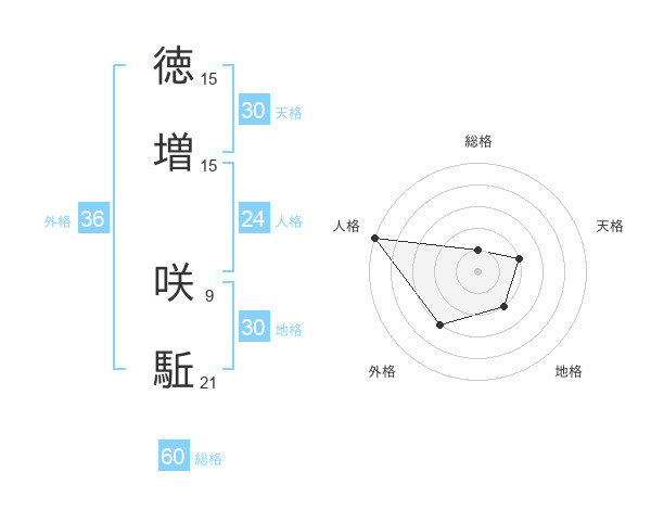 徳増 咲駈さんを姓名の画数から五運を鑑定