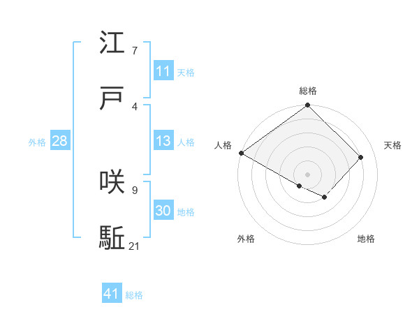 江戸 咲駈さんの総格は41画の5点!