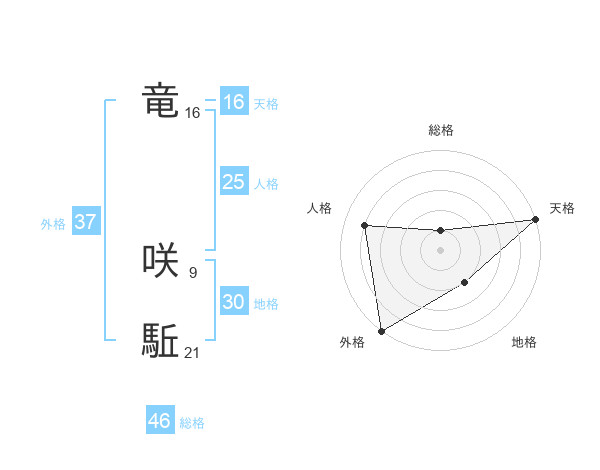 竜 咲駈さんの外格は37画の5点!