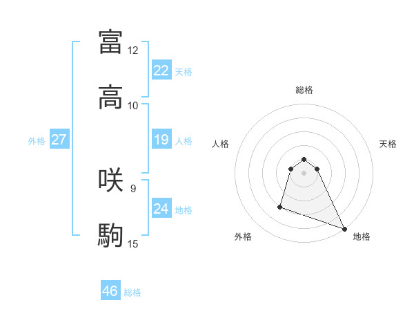 富高 咲駒さんの総格は46画の1点!
