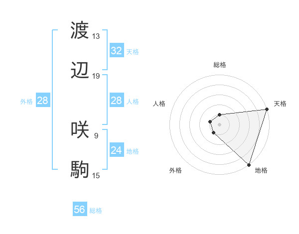 渡辺 咲駒さんの天格は32画の5点!