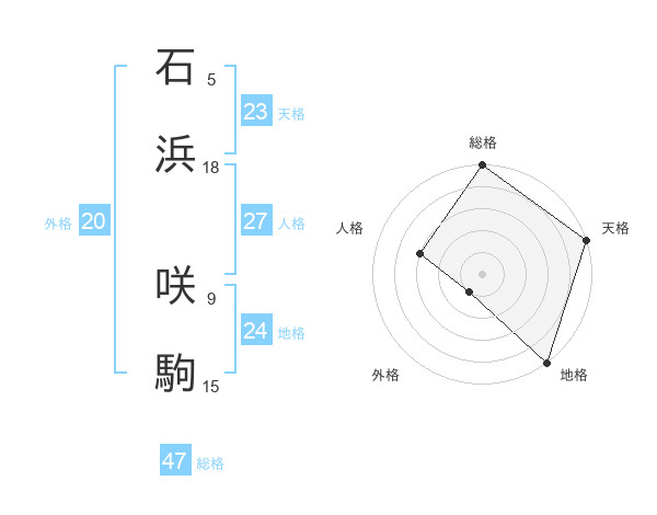 石浜 咲駒さんの総格は47画の5点!