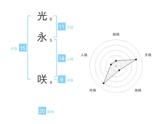 光永 咲さんの総格は20画の1点!