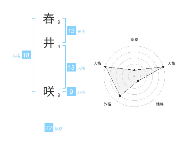 春井 咲さんの天格は13画の5点!