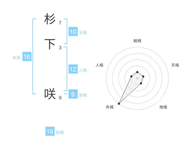 杉下 咲さんの総格は19画の1点!