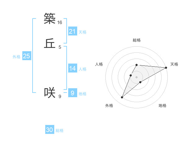 築丘 咲さんの天格は21画の5点!