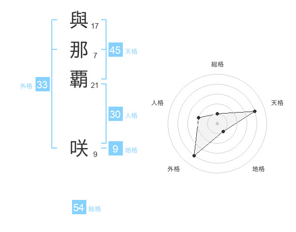 與那覇 咲さんの外格は33画の4点!