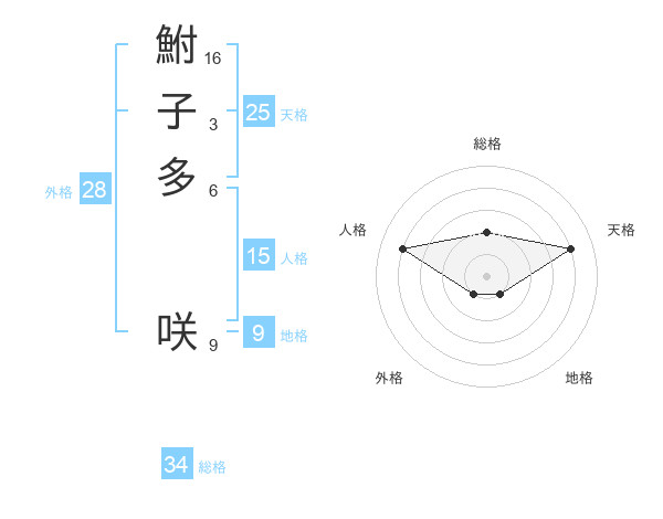 鮒子多 咲さんを姓名の画数から五運を鑑定