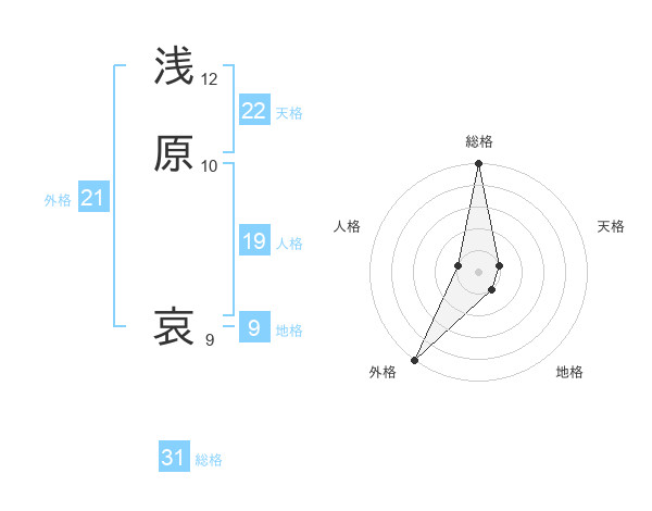 浅原 哀さんの総格は31画の5点!