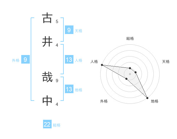 古井 哉中さんの総格は22画の1点!