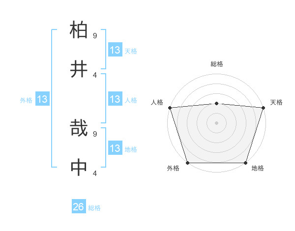 柏井 哉中さんの外格は13画の5点!