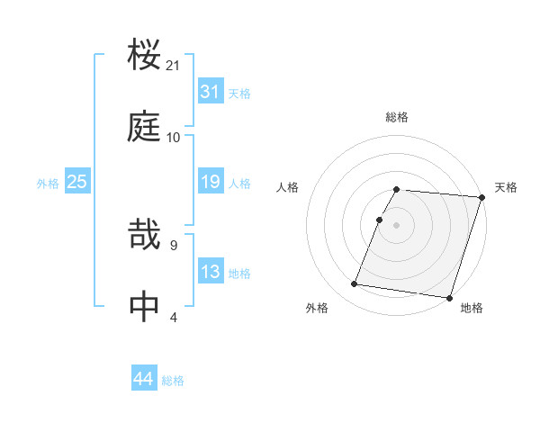 桜庭 哉中さんを姓名の画数から五運を鑑定