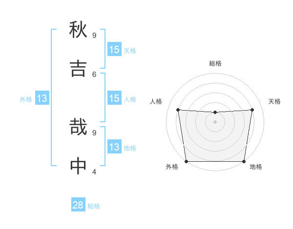 秋吉 哉中さんを姓名の画数から五運を鑑定
