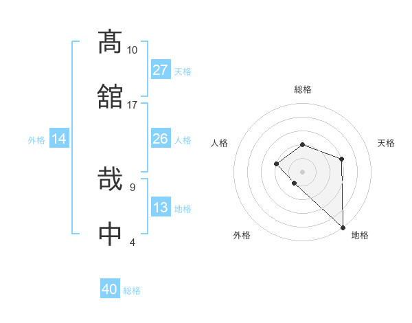 髙舘 哉中さんを姓名の画数から五運を鑑定