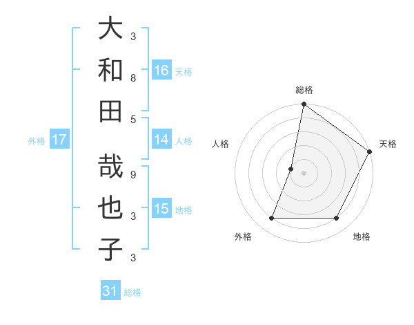大和田 哉也子さんを姓名の画数から五運を鑑定