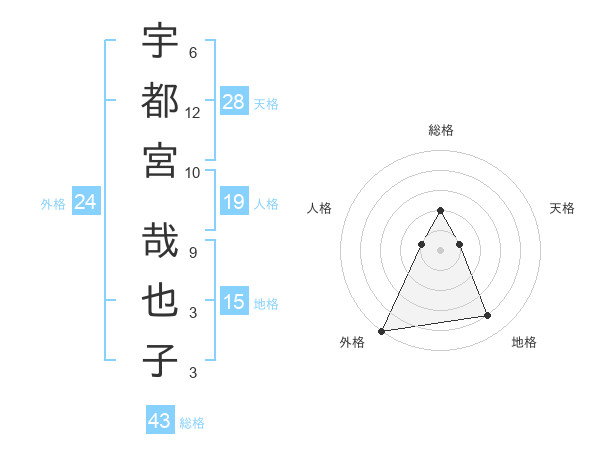 宇都宮 哉也子さんの外格は24画の5点!