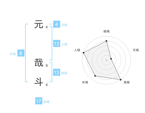元 哉斗さんの総格は17画の4点!