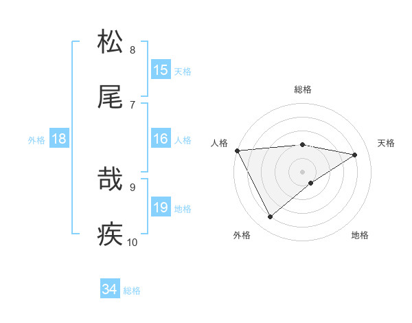 松尾 哉疾さんの総格は34画の2点!