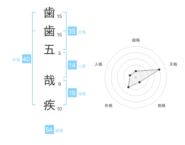 歯歯五 哉疾さんを姓名の画数から五運を鑑定