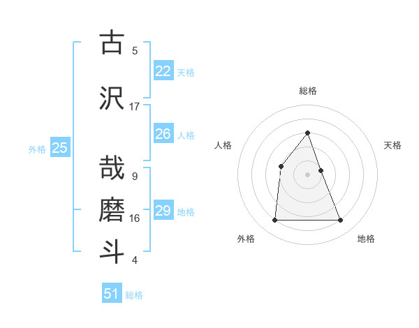 古沢 哉磨斗さんを姓名の画数から五運を鑑定