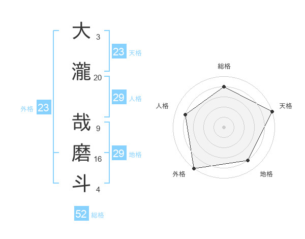 大瀧 哉磨斗さんを姓名の画数から五運を鑑定