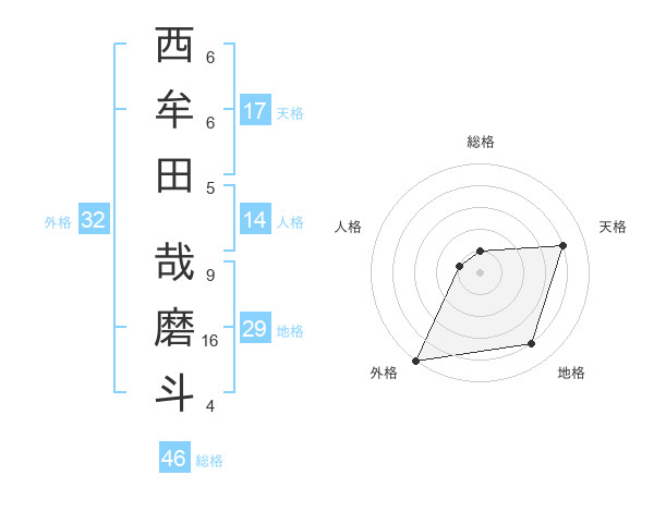西牟田 哉磨斗さんを姓名の画数から五運を鑑定