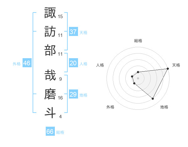諏訪部 哉磨斗さんの地格は29画の4点!