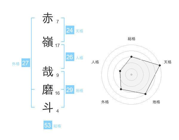 赤嶺 哉磨斗さんの天格は24画の5点!