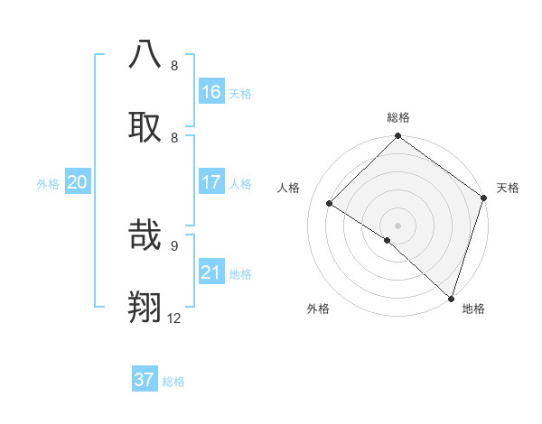 八取 哉翔さんの地格は21画の5点!