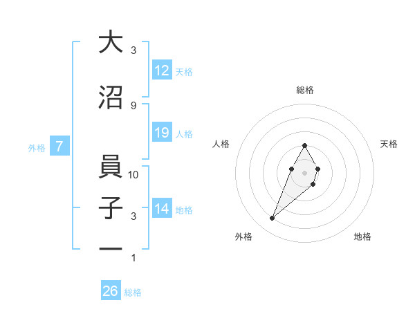 大沼 員子ーさんの人格は19画の1点!