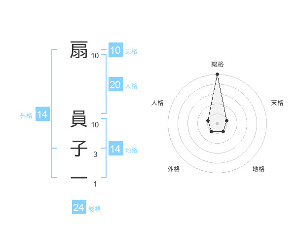扇 員子ーさんを姓名の画数から五運を鑑定
