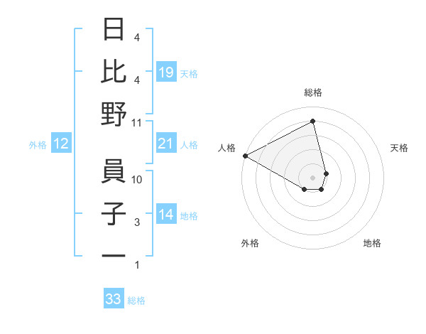 日比野 員子ーさんを姓名の画数から五運を鑑定