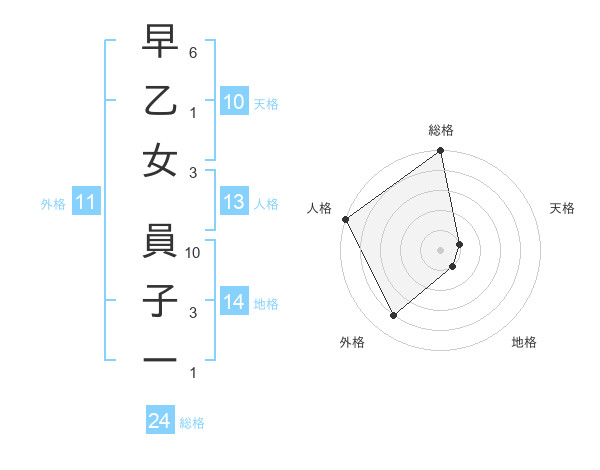 早乙女 員子ーさんを姓名の画数から五運を鑑定