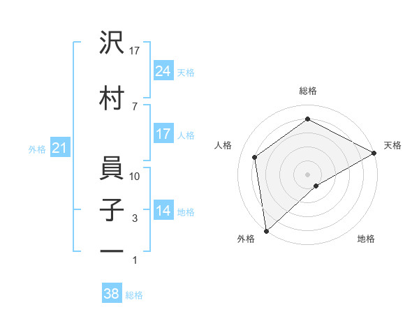 沢村 員子ーさんの天格は24画の5点!