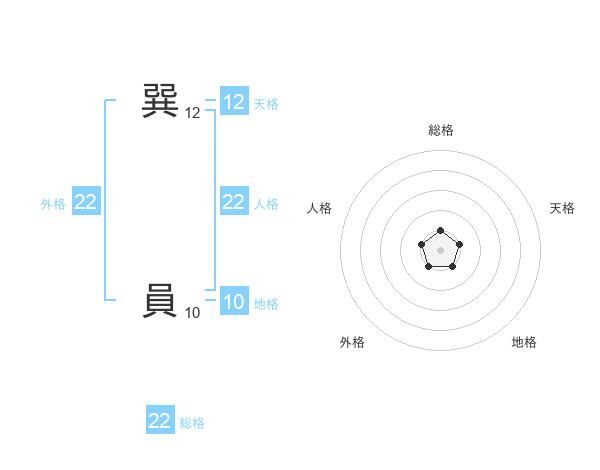 巽 員さんの総格は22画の1点!