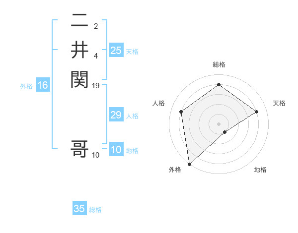 二井関 哥さんの総格は35画の4点!