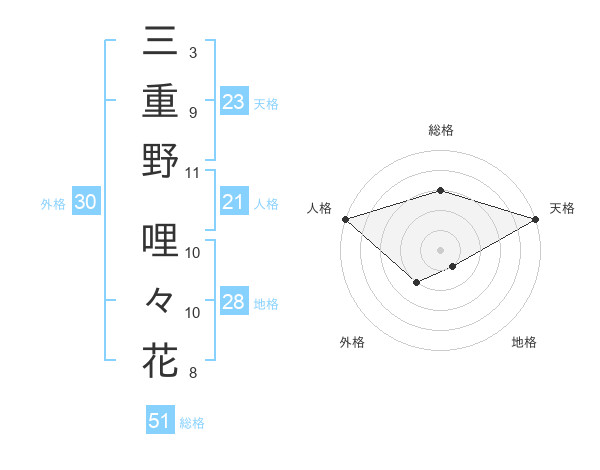 三重野 哩々花さんを姓名の画数から五運を鑑定