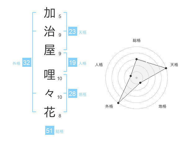 加治屋 哩々花さんを姓名の画数から五運を鑑定