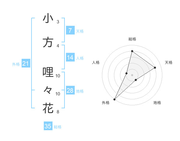 小方 哩々花さんの総格は35画の4点