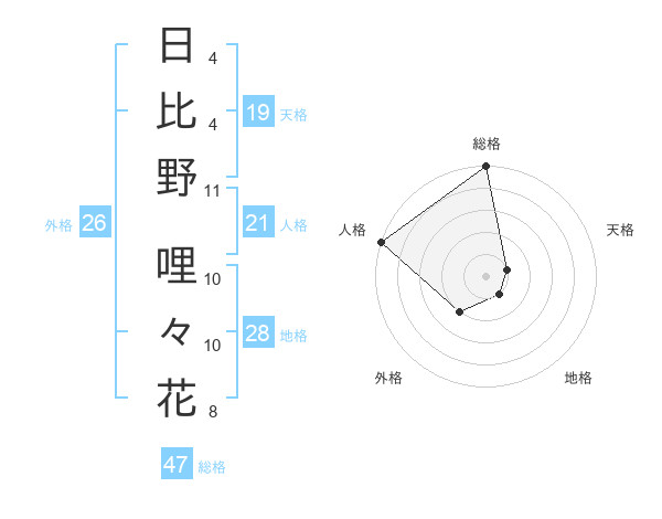 日比野 哩々花さんを姓名の画数から五運を鑑定
