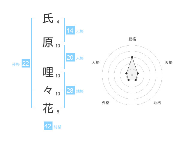 氏原 哩々花さんを姓名の画数から五運を鑑定