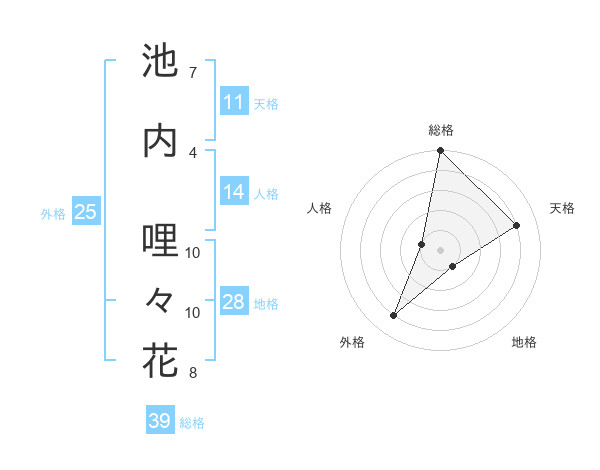 池内 哩々花さんを姓名の画数から五運を鑑定