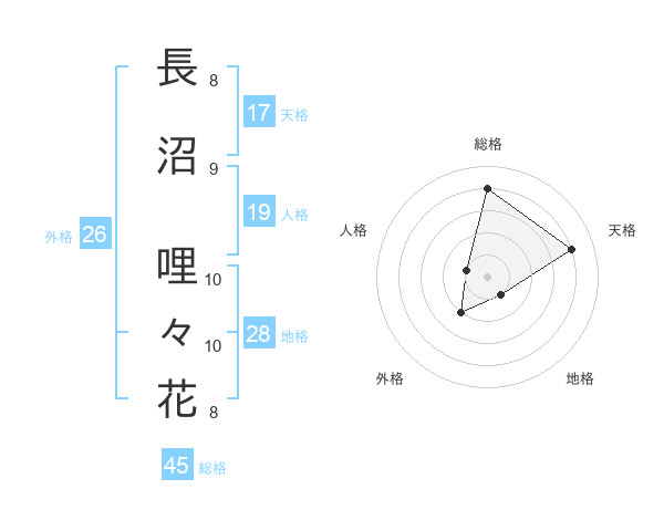 長沼 哩々花さんを姓名の画数から五運を鑑定