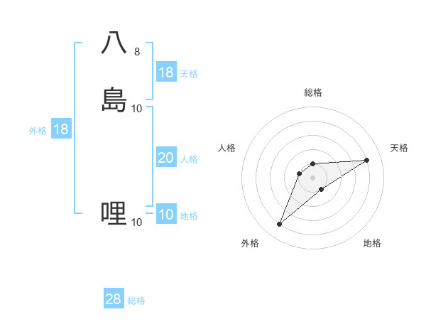 八島 哩さんの天格は18画の4点!