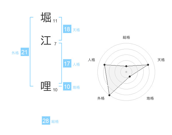 堀江 哩さんの外格は21画の5点!